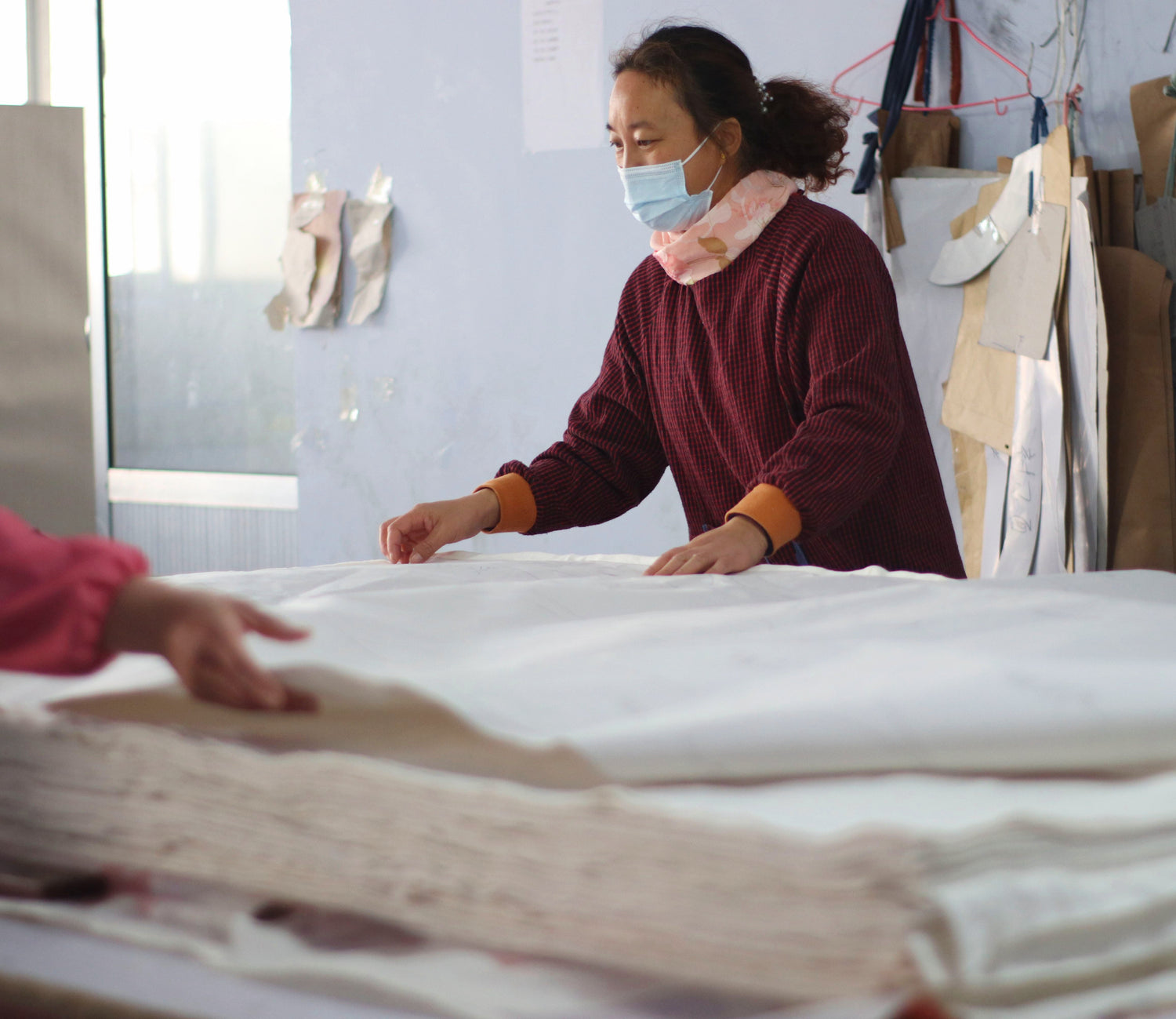 Cavalry chef jackets, aprons and t-shirts are made in an iconic mountain city in Northeast China. Our factory partner employs 164 employees and specialises in the production of hemp and organic fabric clothing, with a spacious campus of over 4,800 square meters. Their team works eight hours a day with an hour lunch break and are paid above the minimum wage as well as given a daily lunch allowance. Early on, our partner has been incredibly supportive and shown a strong desire to help small businesses. As this was their first time manufacturing chef jackets, we have built a close and collaborative working relationship with the team.